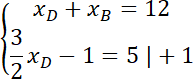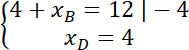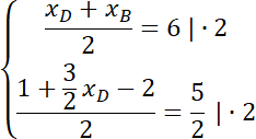 Stwórz układ równań, aby wyznaczyć szukane współrzędne B i D: