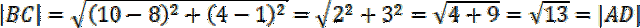 Punkt B leży na prostej zawierającej AB, natomiast D na prostej zawierającej AD, zatem