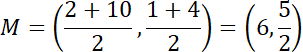 Wyznacz środek odcinka AC: