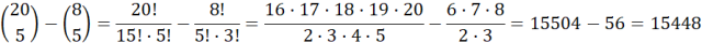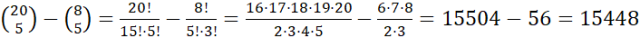 Wybierasz pięcioosobową delegację z grupy 20 osób, w której jest 12 kobiet. Ile jest możliwości takiej delegacji, jeżeli są w niej co najmniej jedna kobieta?