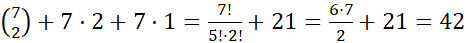 Oznacza to, że jedna kula musi być biała lub obie muszą być białe. W pierwszym przypadku wybierasz dwie kule spośród 7 białych, czyli masz