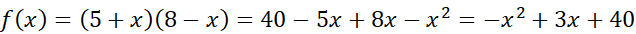 Długości boków nowego prostokąta: 5 + x, 8 – x