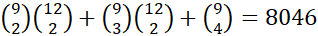 Masz łącznie 9 kartek z numerami parzystymi oraz 12 z numerami nieparzystymi. Interesują Cię przypadki, kiedy dwie, trzy lub cztery wylosowane kartki mają numer parzysty. Masz więc w sumie