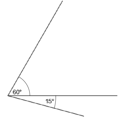 Suma kątów 60° i 15° daje kąt o mierze 75°. Odłóż miarę kąta 15° przy kącie 60°