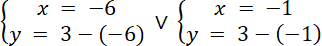 Rozwiąż układ równań z dwoma równaniami danymi w treści zadania. Zapisz współrzędne obu punktów.