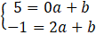 Odczytaj dwa punkty należące do wykresu prostej z rysunku. Wstaw współrzędne tych punktów do równania na prostą