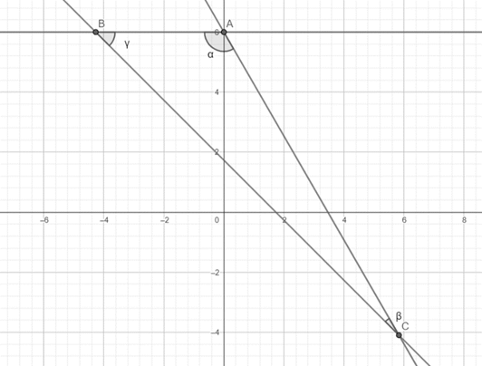 W tym zadaniu musisz wyznaczyć miarę kątów trójkąta zawierającego się w bokach zadanych przez proste.
