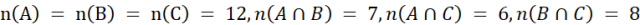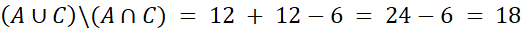 Suma zbiorów A i C, to zsumowane elementy każdego z tych zbiorów 12 + 12 = 24, oraz odjęta ich część wspólna - 6. Zatem 24 - 6 = 18.