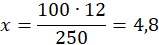 Skoro 250% to 12, należy określić, ile wynosi 100%. Szukaną liczbę należy oznaczyć jako x: