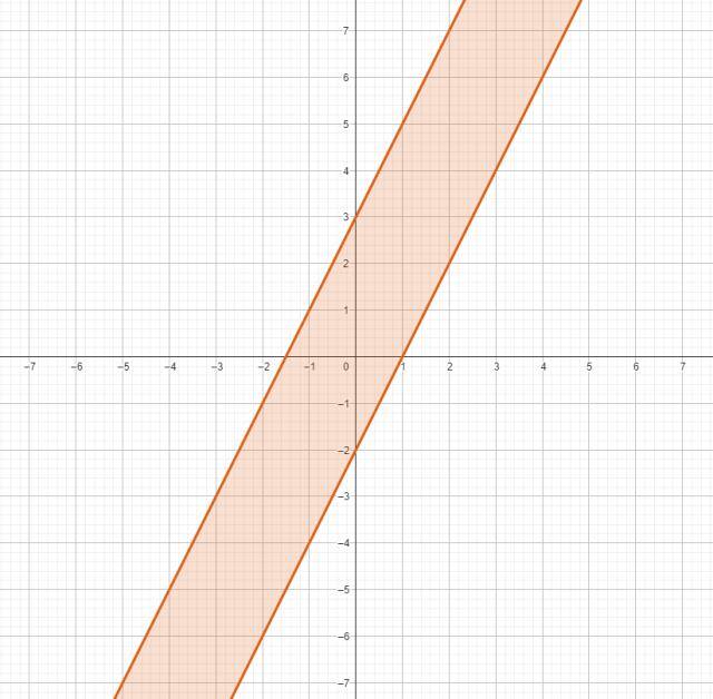 Szukany obszar to część płaszczyzny ograniczona tymi dwoma prostymi.