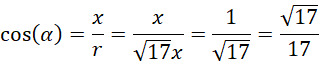 Odczytaj z układu współrzędne punktu znajdujące się na ramieniu końcowym kąta α. Następnie oblicz odległość tego punktu od początku układu współrzędnych, korzystając z twierdzenia Pitagorasa w trójkącie prostokątnym, w którym współrzędne punktu odpowiadają długościom przyprostokątnych. Następnie wyznacz wartości funkcji trygonometrycznych, korzystając z zależności: