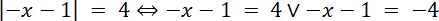 W tym zadaniu musisz rozwiązać algebraicznie równanie: | - x - 1| = 4.