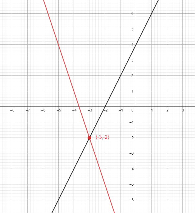 Rozwiązanie graficznie: przekształć równania wchodzące w skład układu do postaci kierunkowej, rozwiązaniem układu jest punkt przecięcia prostych wchodzących w skład układu. Rozwiązanie algebraiczne: przekształć równania wchodzące w skład układu do ułatwienia obliczeń i rozwiąż układ dowolną metodą.