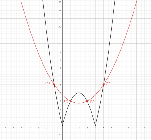 Wyznacz wartości współczynników b i c. Rozwiąż równanie: algebraicznie: wykorzystaj własność wartości bezwzględnej , rozwiąż powstałe równania, graficznie: naszkicuj wykresy obu funkcji i zaznacz punkty wspólne.