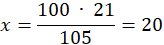 Skoro 105 % to 21, należy określić, ile wynosi 100%. Szukaną liczbę należy oznaczyć jako x: