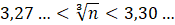 W tym zadaniu musisz podnieść warunek do sześcianu, aby wyznaczyć przybliżoną liczbę n. Sprawdź między jakimi liczbami naturalnymi leży przybliżenie. Spierwiastkuj graniczne liczby i sprawdź czy ich przybliżenie jest różne. Jeśli jest to można jednoznacznie ustalić wartość n.