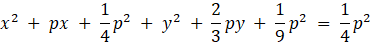 W tym zadaniu musisz znaleźć takie wartości parametru p, aby podane równanie opisywało okrąg. Powinieneś również podać współrzędne środka okręgu i jego promień zapisane za pomocą parametru p.