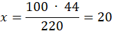 Skoro 220% to 44, należy określić, ile wynosi 100%. Szukaną liczbę należy oznaczyć jako x: