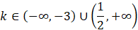 W pierwszej kolejności sprawdź dla jakich wartości parametru k równanie będzie miało dwa rozwiązania (jego wyróżnik będzie dodatni).