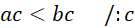 Podziel obie strony przez c. Z polecenia wiadomo że jest to liczba dodatnia, więc nierówność się nie odwróci.