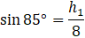 W pierwszej kolejności oblicz wysokość węższej części lejka oznaczoną jako h1. Jest ona przyprostokątną trójkąta prostokątnego tworzonego przez zewnętrzną ściankę węższej części lejka o długości 8 cm. Kąt w tym trójkącie wynosi 85°. Długość tę możesz obliczyć z własności funkcji trygonometrycznych. Szukany bok jest naprzeciwko kąta, więc skorzystaj z sinusa. Korzystając z definicji sinusa możesz zapisać: