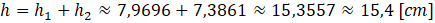 Wysokość całego lejka to suma tych dwóch obliczonych wysokości. Wynik masz zaokrąglić do 1mm, czyli jeżeli podajesz wysokości w centymetrach to do jednego miejsca po przecinku.