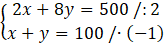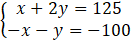 x + 2y – x – y = 125 – 100