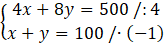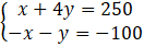 x + 4y – x – y = 250 – 100