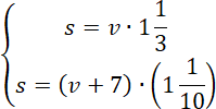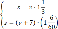 Pierwsze równanie układu powstało dzięki informacji: w poniedziałek podczas treningu chłopiec przejechał pewną drogę w ciągu 1 godziny i 20 minut.