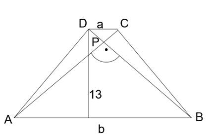 Trapez jest równoramienny, a przekątne przecinają się pod kątem prostym, więc trójkąty ABP i DPC mają kąty równe 45°, 45°, 90°
