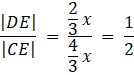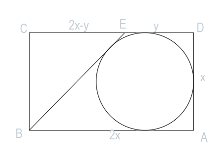 Dany jest prostokąt o bokach |AB| = 2|BC|. Przecięto go na trójkąt BCE oraz trapez ABED, tak że trapez można opisać na okręgu. Znajdź stosunek, w jakim punkt E podzielił bok prostokąta.