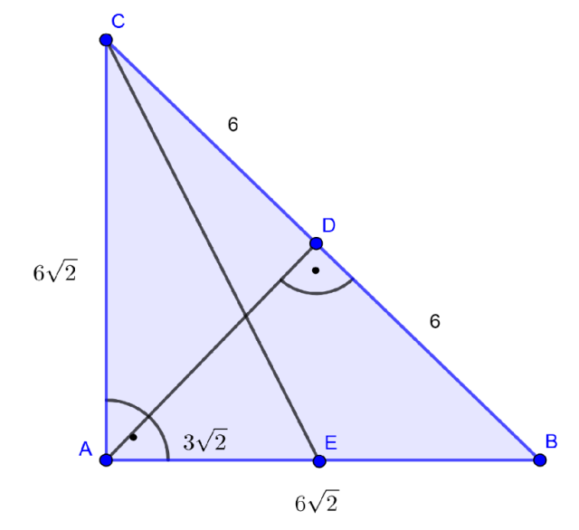 W trójkącie prostokątnym równoramiennym, długość środkowej poprowadzonej na przeciwprostokątną wynosi 6 cm. Oblicz długość środkowej poprowadzonej z wierzchołka kąta ostrego tego trójkąta.