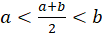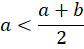 Wykaż, że jeśli dla liczb rzeczywistych a < b, to średnia arytmetyczna znajduje się pomiędzy tymi liczbami.