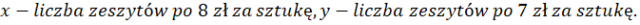 W tym zadaniu musisz podać liczbę zeszytów, które kupił Bolek, jeżeli kupił zeszyty za 7 i 8 zł i łącznie zapłacił za nie 60 zl.