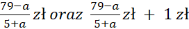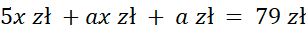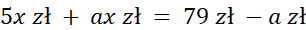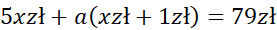 W tym zadaniu musisz obliczyć cenę obu rodzajów musli. Za a opakowań musli z owocami i 5 opakowań musli z rodzynkami Kasia zapłaciła 79 zł. Musli z owocami było o złotówkę droższe.