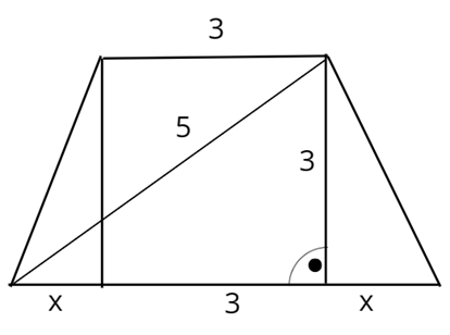 Oblicz długość x + 3 z twierdzenia Pitagorasa. Z tego samego twierdzenia wyznacz długość ramienia trapezu.