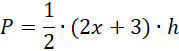 Określ wartość x, po czym oblicz pole trójkąta prostokątnego ABC. Powiedz także, ile wynosi wysokość opuszczona na przeciwprostokątną.