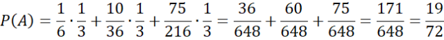 Wyznacz prawdopodobieństwo otrzymania dokładnie jednej szóstki, jeśli ze zbioru {1, 2, 3} wybieramy losowo jedną liczbę, a następnie rzucamy tyle razy kostką.