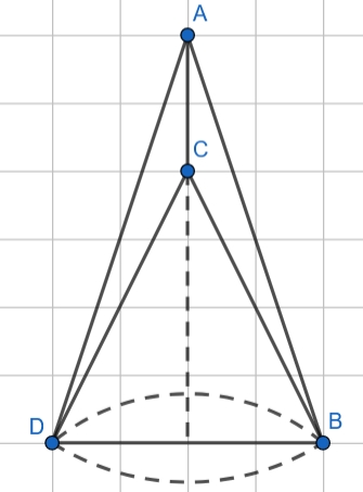 Wyznacz objętość bryły, jeśli dany jest trójkąt , w którym , i . Trójkąt ten obrócono wokół prostej zawierającej najkrótszy bok.