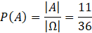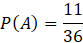 Pozostało wyliczyć prawdopodobieństwo wyrzucenia przynajmniej jednej piątki podczas dwukrotnego rzutu. Jest to iloraz liczby dobrych wyników przez wszystkie możliwe wyniki.