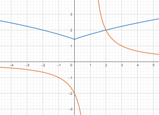 Aby odczytać rozwiązanie, sprawdź, dla jakich argumentów wykres funkcji niebieskiej znajduje się nad wykresem pomarańczowym.
