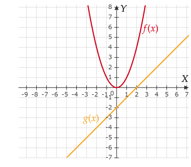 Na początku, oznacz obie strony nierówności jako funkcje. Graficznym rozwiązaniem nierówności