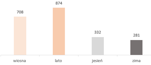 Wiedząc, że ankietowanych było 1000 oraz każdy z nich musiał podać co najmniej jedną odpowiedź na pytanie, jaka jest jego ulubiona pora roku, w zadaniu należy odpowiedzieć na pytanie: Czy na podstawie tych wyników można stwierdzić, że ponad połowa anektowanych należy do zbioru