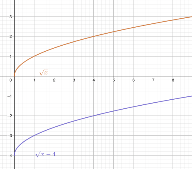 Zauważ, że wykres funkcji g jest przesunięciem wykresu funkcji f o 4 jednostki w dół.