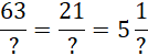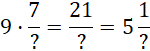Najpierw wymnóż 9 i 7, a następnie zauważ, że w przedostatnim kroku równania 21 zmienia się na 5 i jest licznik 1. Wynika z tego, że mianownikiem w dwóch ostatnich krokach jest 4, ponieważ 5 · 4 + 1 = 21. Skoro 9 · 7 = 63, a w następnym kroku to 21, to oznacza, że skrócono przez 3, czyli mianownik zamiast 4 będzie 4 · 3 = 12, by następnie po skróceniu przez 3, był równy 4.