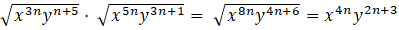 Podczas mnożenia tych samych liczb, ich potęgi się dodają. Pierwiastek kwadratowy nad potęgą zmniejsza ją dwukrotnie.