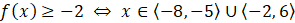 Odczytaj z wykresu zbiór argumentów, których wartość funkcji jest nie mniejsza niż -2.