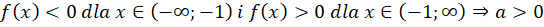 Zauważ, że z podanych przedziałów monotoniczności można wywnioskować, że szukana funkcja liniowa jest rosnąca. Dodatkowo