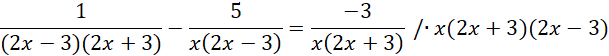 Rozpisujemy założenie i je rozwiązujemy. Następnie przemnażamy przez mianowniki ułamków algebraicznych i rozwiązujemy równoważne równanie. Otrzymana rozwiązania porównujemy z założeniami i zapisujemy końcową odpowiedź.