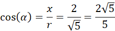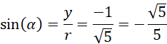 Odczytaj z układu współrzędne punktu znajdujące się na ramieniu końcowym kąta α – wybierz punkty kratowe, które mają całkowite współrzędne. Następnie oblicz odległość tego punktu od początku układu współrzędnych, korzystając z twierdzenia Pitagorasa w trójkącie prostokątnym, w którym współrzędne punktu odpowiadają długościom przyprostokątnych. Następnie wyznacz wartości funkcji trygonometrycznych, korzystając z zależności:
